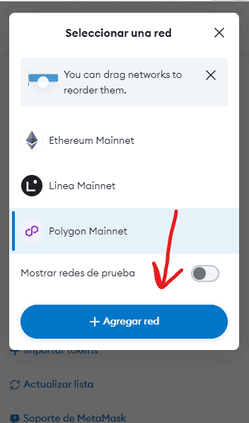 To always view the $ZHT tokens, it is important to be connected to the Polygon network. To add this network, click on the icon in the upper left corner.
